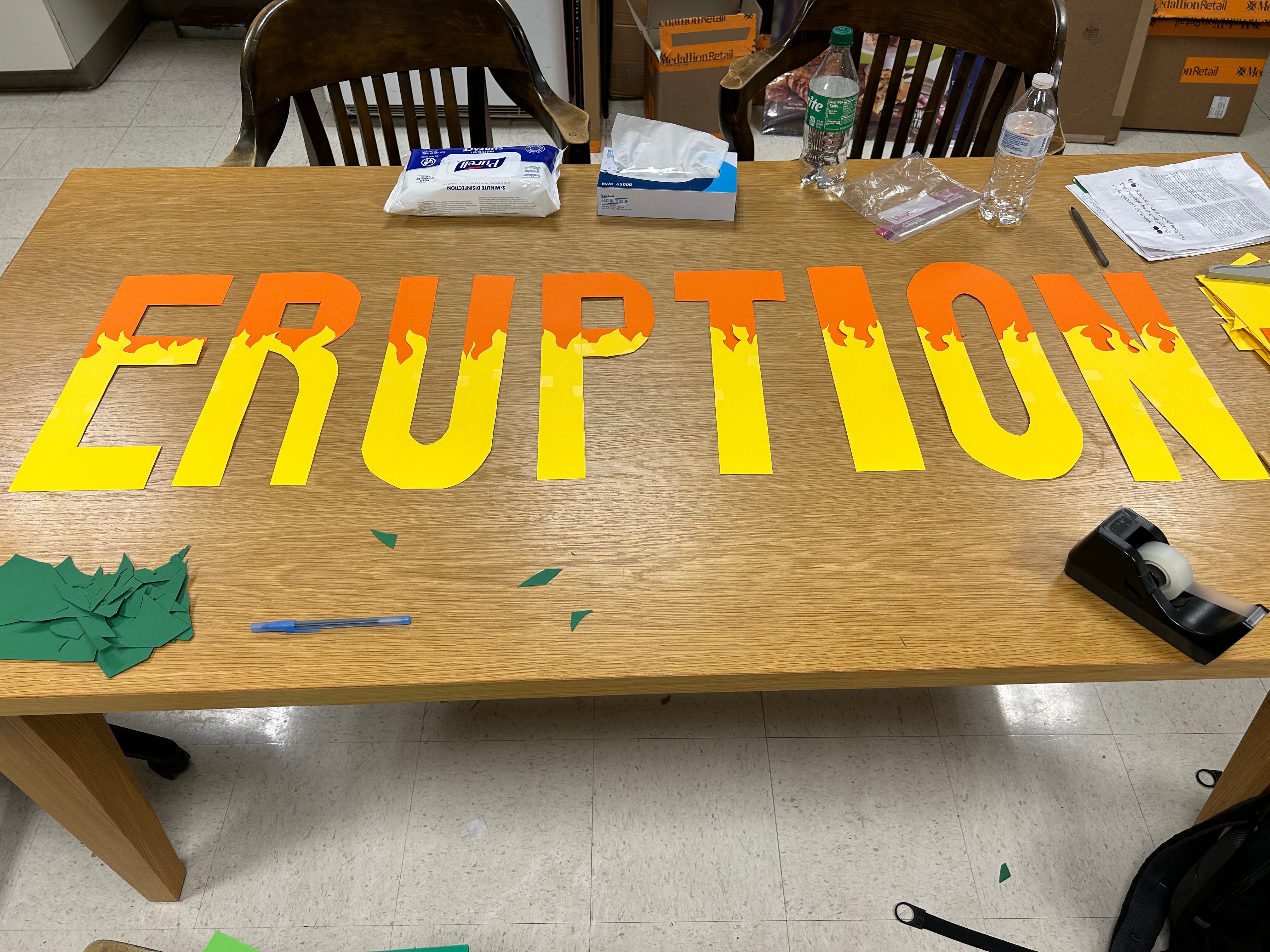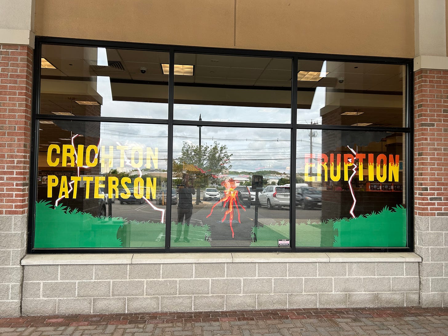 I created a window display for the Barnes & Noble I work at! It’s to promote Michael Crichton and James Patterson’s new book, Eruption. It was fun to put some of my artistic skills to use at my retail job. It took two full shifts and a lot of construction paper to make, but I think it came out well and people in the store seem to like it.